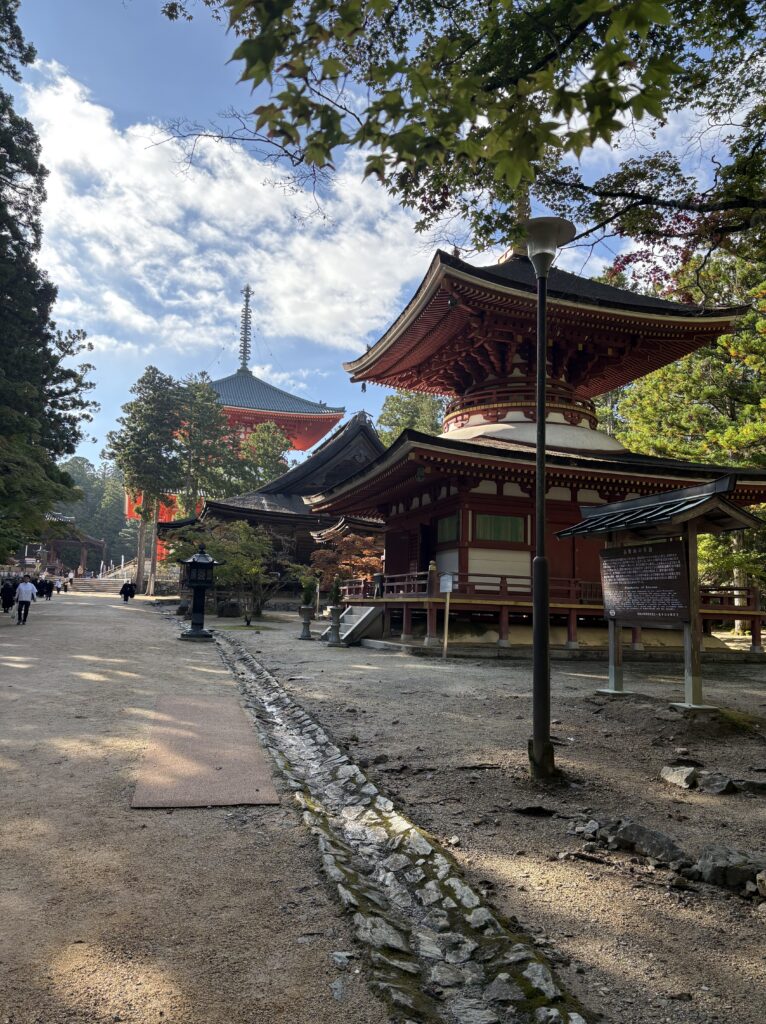 金剛峯寺。あいにくの雨天より、まるで後光が差すように突然晴れ間に変わり、秋の高野山を味わうことができました。