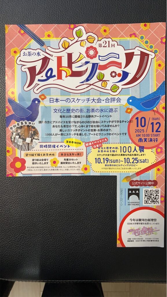 2025.11.09 塾生作品・受賞 【野外アートイベント”お茶の水アートピクニック”にて】生徒様の作品が受賞されました! 生徒様がまたまた受賞されたとの嬉しい知らせが!! “お茶の水アートピクニック日本一のスケッチ大会”優秀作品の展覧会!何と鎌倉水彩画塾から、八木下さんと山﨑さんの2名が選出されております!おめでとうございます〜^^ ご興味のある方は是非、芸術の秋にご応募なさってみて下さい^^ こちらはマルマン賞を受賞された八木下さんの作品!野外作品とは思えない完成度ですね。 挑戦される姿勢が素晴らしい!