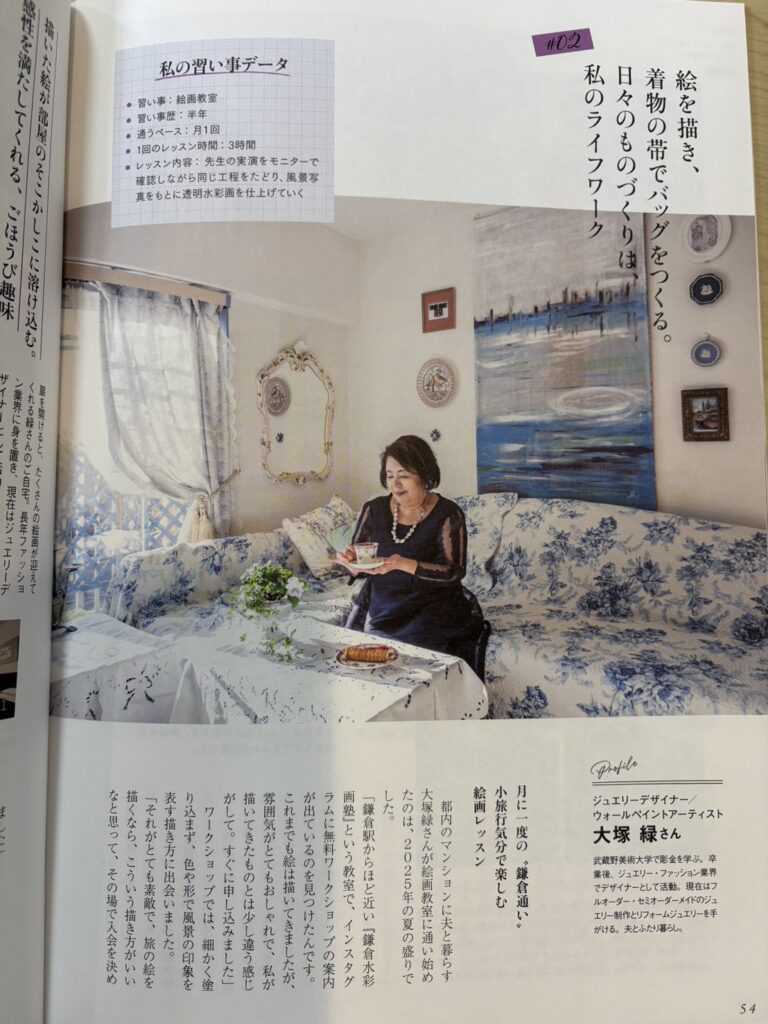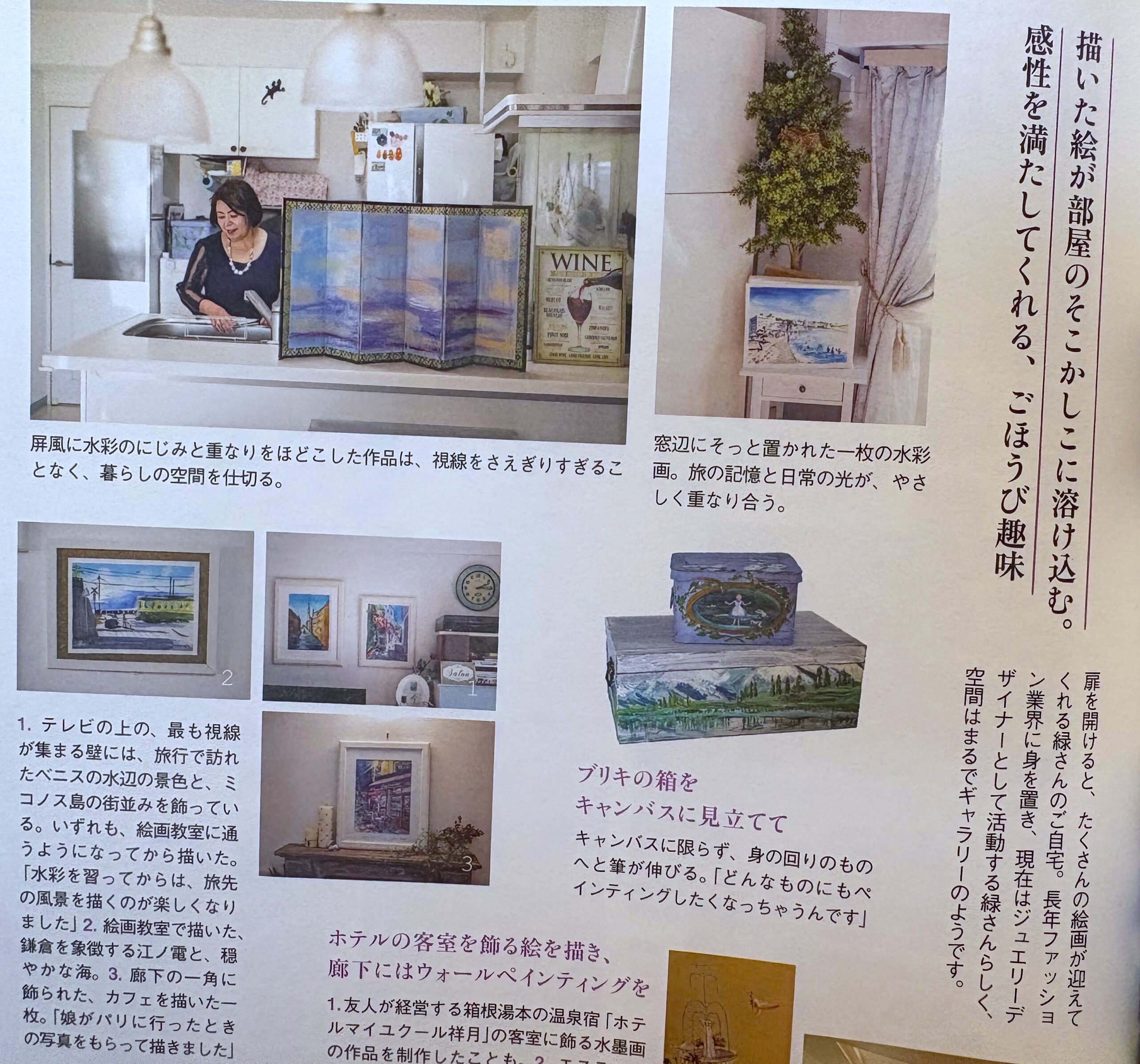 日々のものづくりのライフワークの一つに水彩画を。お部屋も素敵ですね。